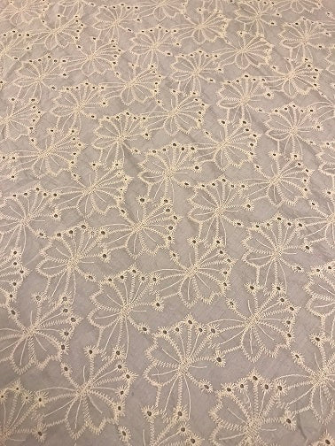 Cotton lawn fabric is a fine woven cotton material with a silky soft finish. This fabric is used for dressmaking, especially for summer dresses. Features an openwork embroidery motif. 30 degree wash.