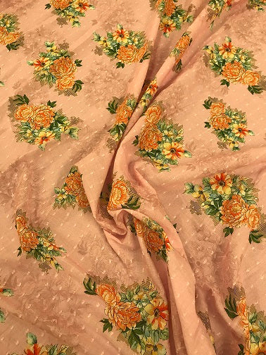 100% Cotton Dobby Spot Lawn - Rose Pink Floral