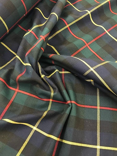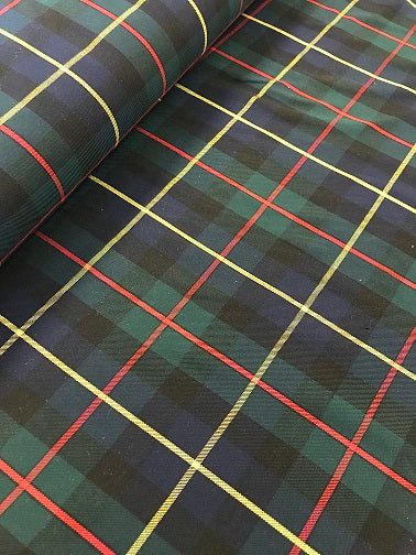 Poly viscose Tartan fabric is a fabric made from a blend of polyester and viscose, making it a durable and versatile fabric. The blend not only makes the fabric strong, but also resistant to creases and drapes well, making it perfect for clothing and interior furnishings, such as kilts, trousers, skirts, curtains, cushions and tablecloths.